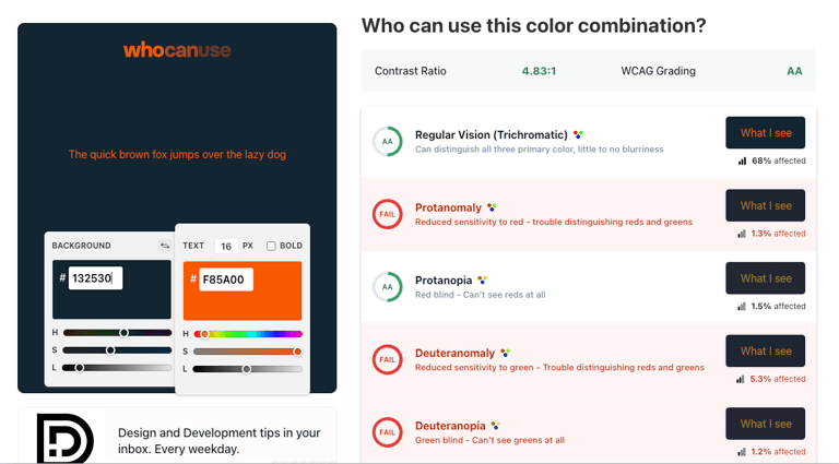 Contrast ratio analysis (using whocanuse.com)
