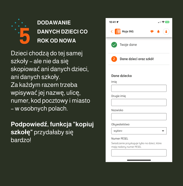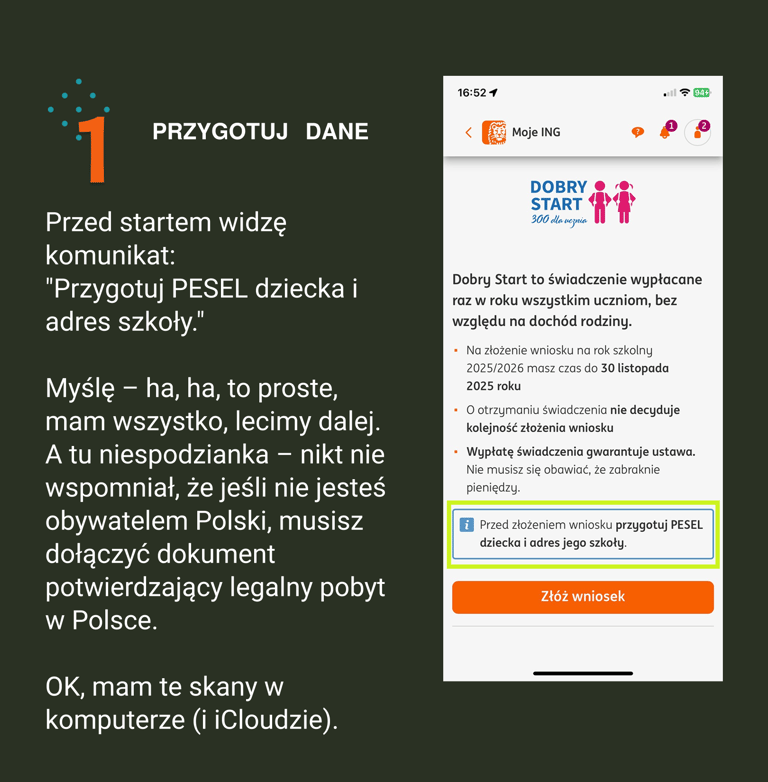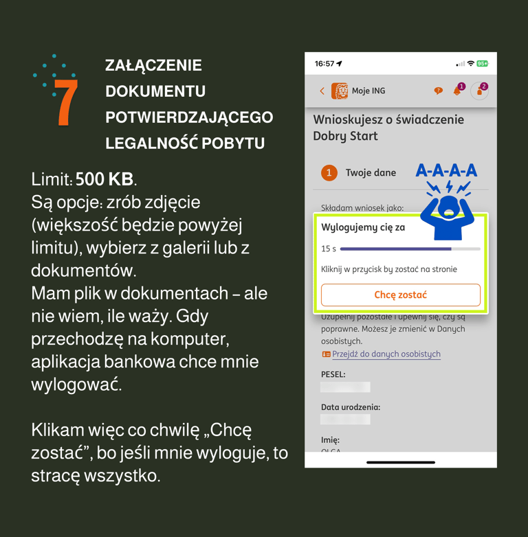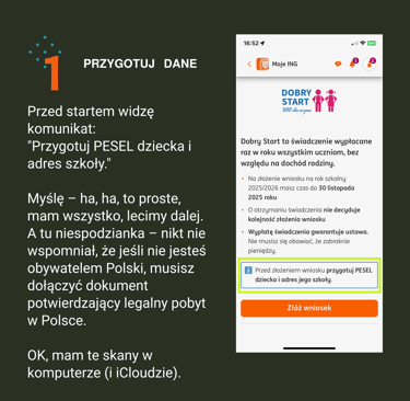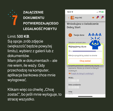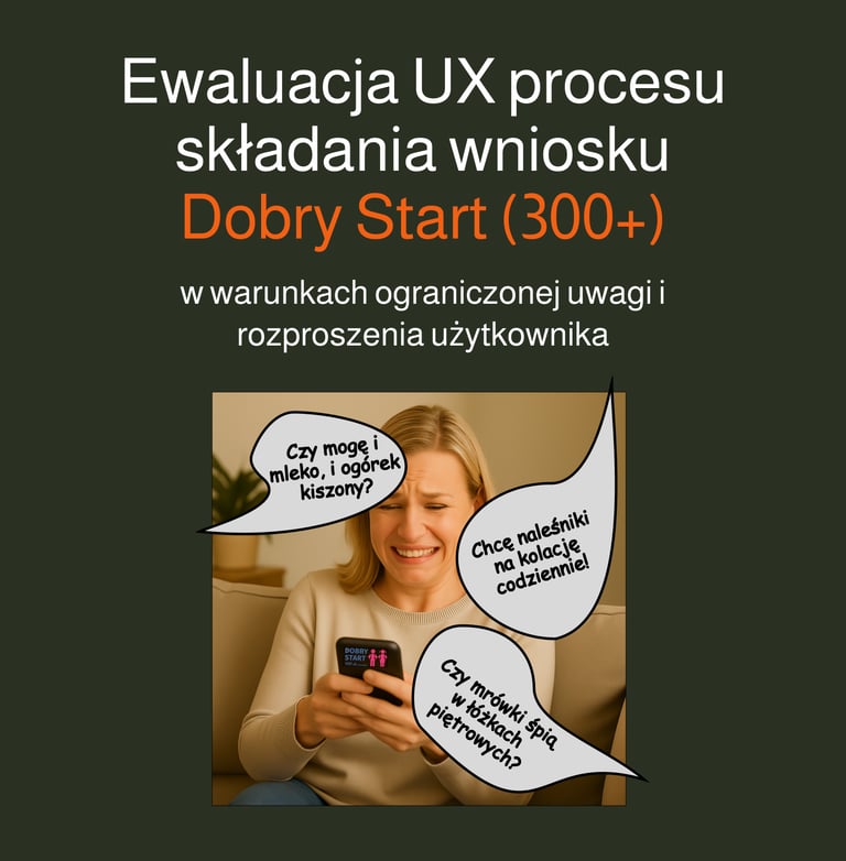 A light-hearted UX review created for LinkedIn, showing how users experience the online “Dobry Start” (300+) form when they are distracted, for example, by kids asking random questions.